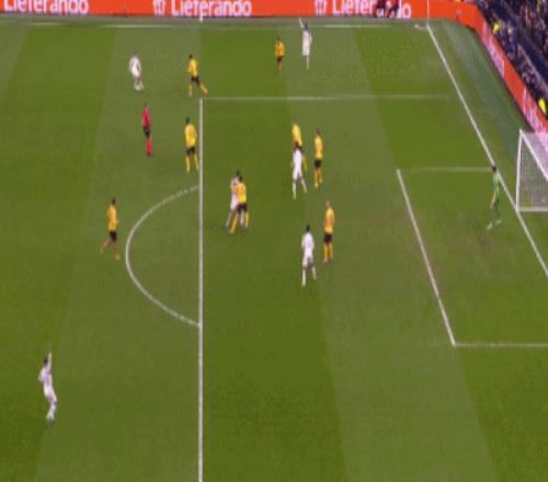 第90+1分鐘,施洛特貝克頭球攻門(mén),維卡里奧撲出皮球