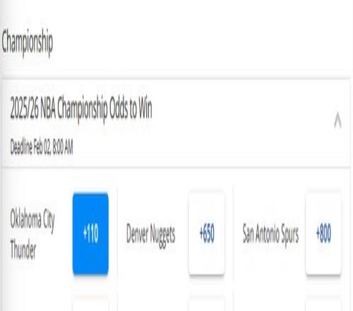 根據最新奪冠賠率,最被看好的前三支球隊依次是雷霆、掘金和馬刺,全部來(lái)自西部,其中雷霆的賠率斷層領(lǐng)先。