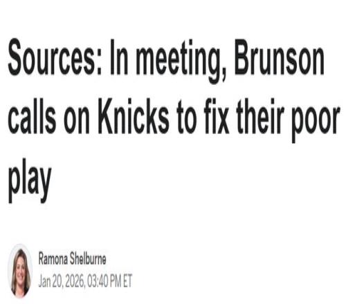 多位消息人士稱(chēng),球隊在11場(chǎng)比賽中輸掉9場(chǎng),并吞下4連敗后,布倫森在會(huì )議中向隊友們明確,尼克斯必須在隊內為一月以來(lái)的糟糕表現尋找解決辦法,而非寄希望于教練組。