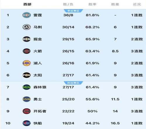今天比賽開(kāi)啟前,西部局勢可謂一言難盡